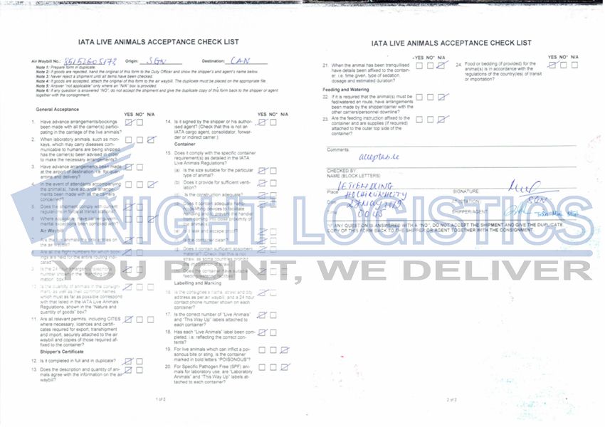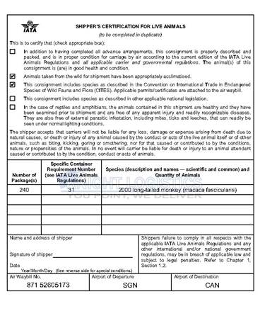 Below are highlights of Knight Logistics’ procedure for handling this complex export shipment of 2,000 long-tailed macaques on the charter flight: