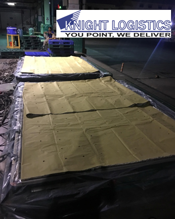 Image 1. Absorbent paper and plastic film are pre-arranged on each ULD prior to cargo delivery to the airport. |
