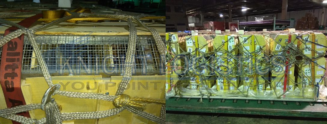 Image 6. The ULD has been strapped, secured with braces, and netted, ready for loading onto the aircraft. |